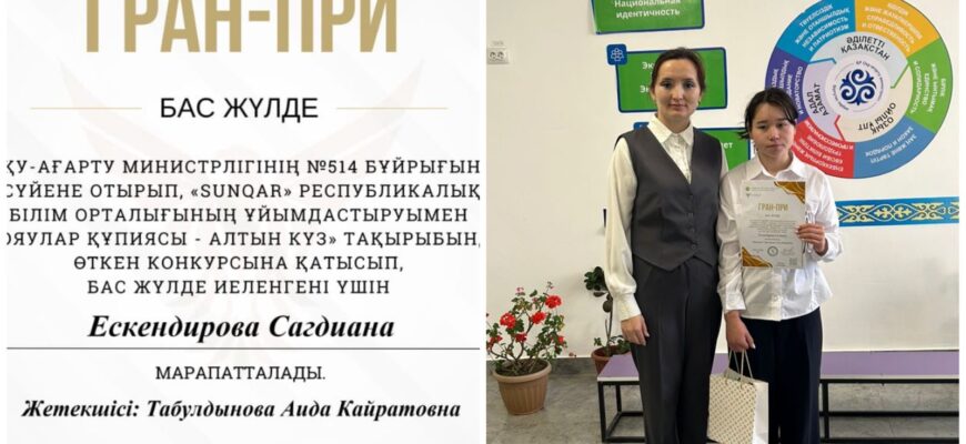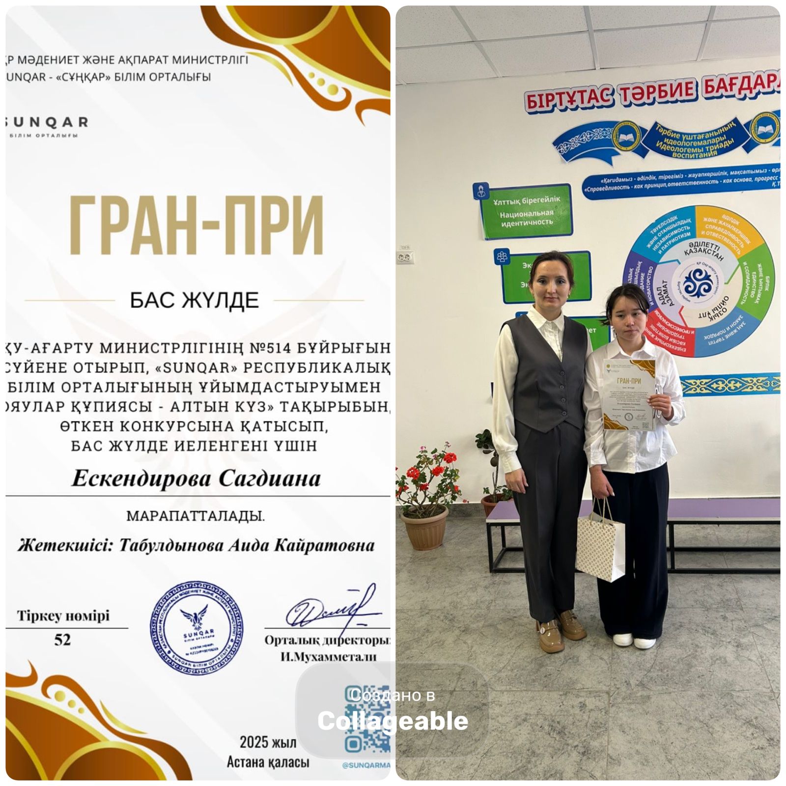 Ученица 11 класса КГУ «Петровская средняя школа» Ескендирова Сагдиана участвовала в республиканском конкурсе «Секрет красок- Золотая Осень» и выиграла Гран-при.Поздравляем!